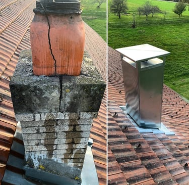 • Réparation des solins et joints de cheminée, fenêtres de toit, rives ou faîtages.
